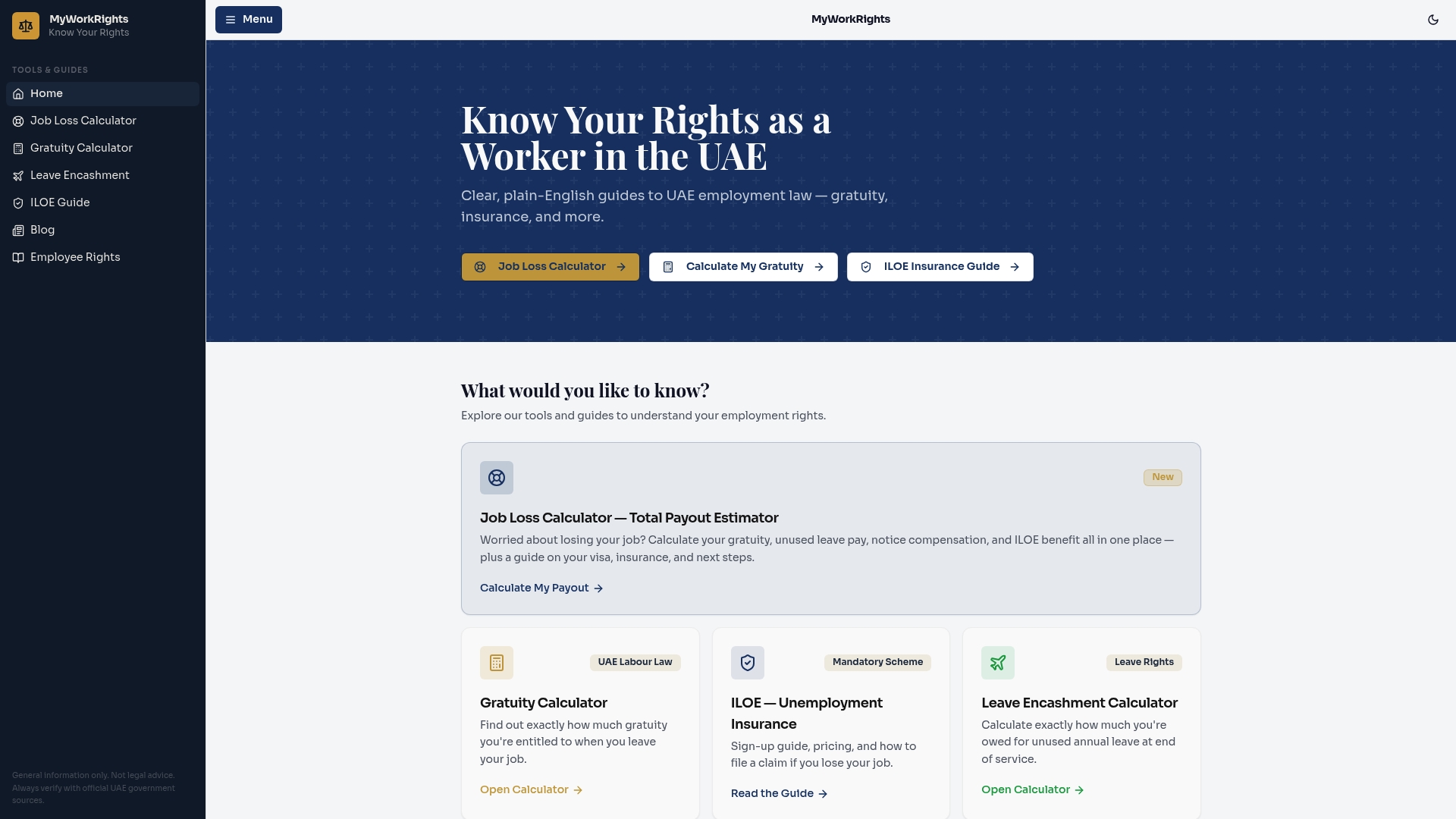 Verifying your labour contract is just the beginning of understanding your full employment protections in the UAE. MyWorkRights offers detailed guides on UAE employment laws and rights, helping you go beyond basic contract checking to truly empower yourself in the workplace. Access practical tools like leave and gratuity calculators that give you precise figures for your entitlements.